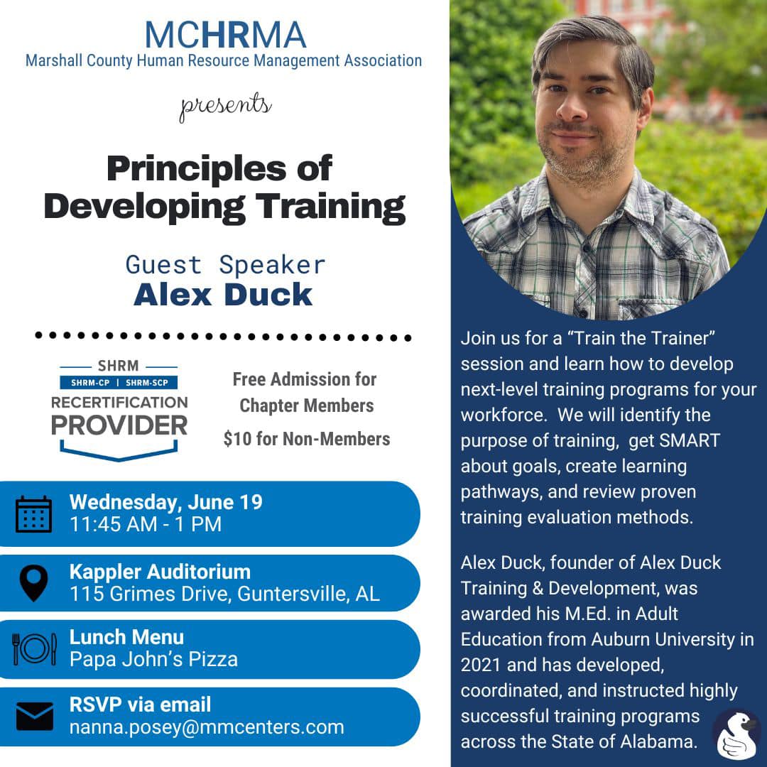 Are you responsible for training your workforce? Join us on June 19th for a “Train the Trainer” course led by Alex Duck, M.Ed., and learn how to develop next-level training programs that stick!